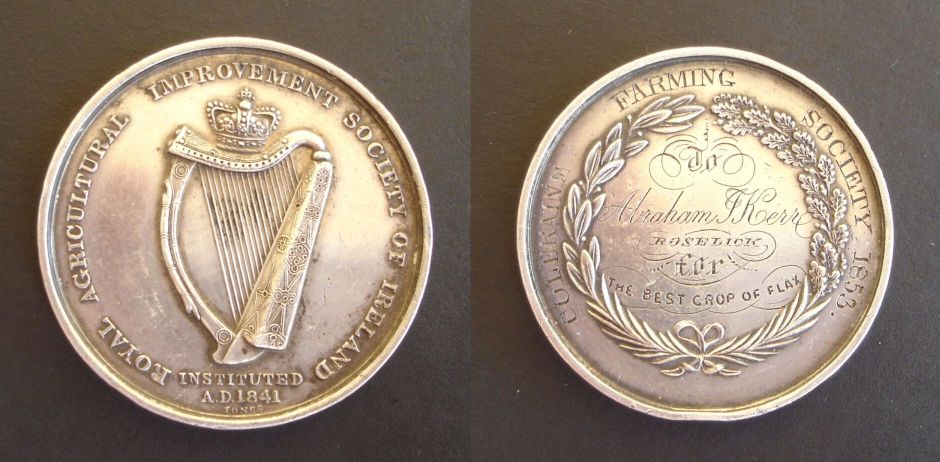 In 1853 Abraham Kerr was growing flax in the Roselick area of Coleraine and won a medal from